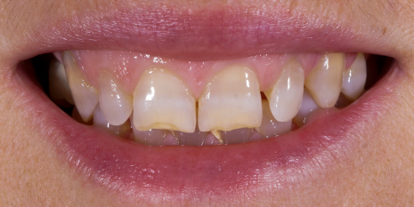 ![Slučaj 1: Nakon ugradnje metal keramičkih krunica]()